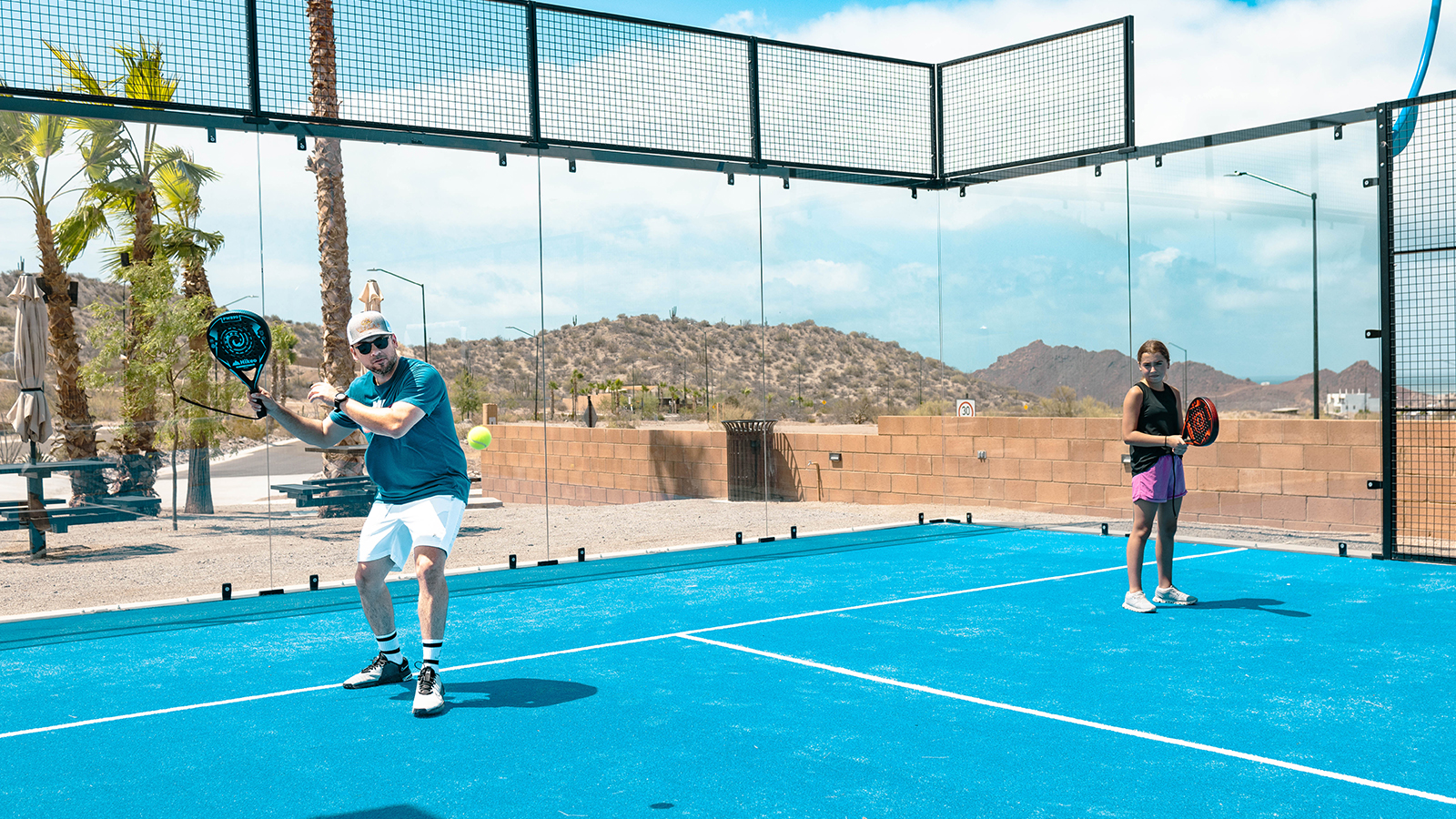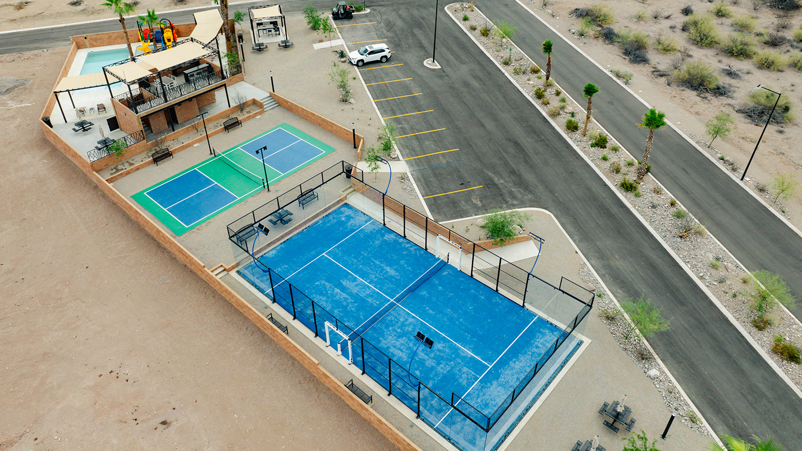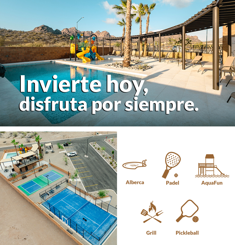 Espacios únicos para jugar Padel, Pickleball, área de Grill o relajarte en la alberca mientras los niños se divierten.